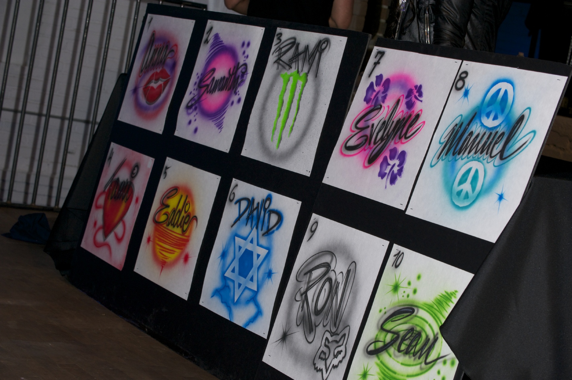 Graffiti is a unique way of customizing apparel. Give the graffiti artist your name and watch as he transforms either a baseball cap or t-shirt into a piece of urban art.