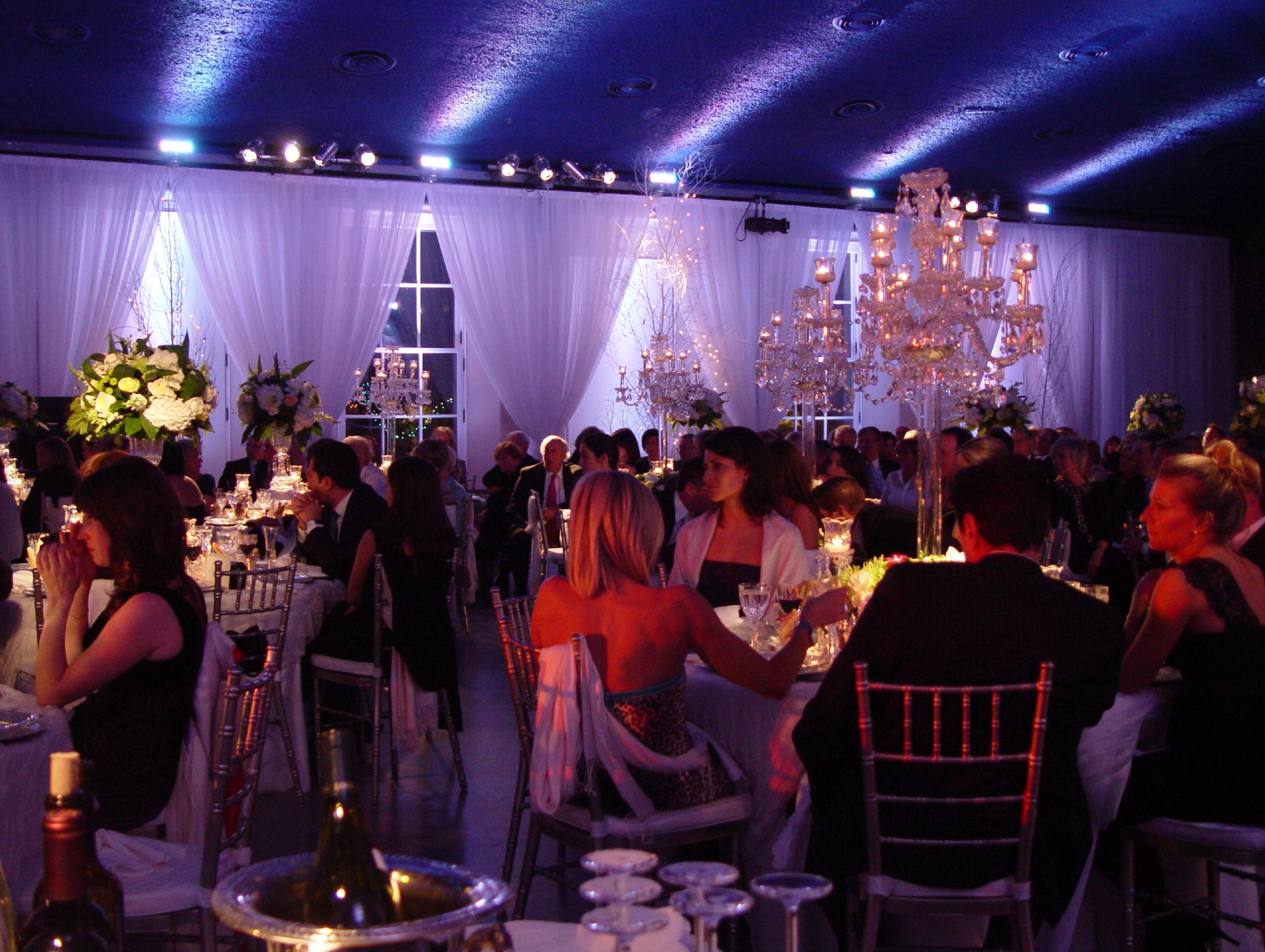 Curtaining is the latest trend in venue décor. Sleek yet classy, the curtains are an ideal option for hiding any imperfections on the walls as well as for creating continuity throughout the room. Available in sheer white, black velvet, white glitter and black glitter. Additional colours available upon request.